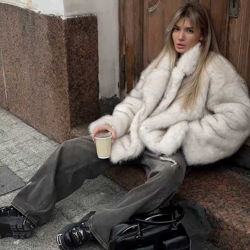 Manteau Oversize Femme en Fausse Fourrure